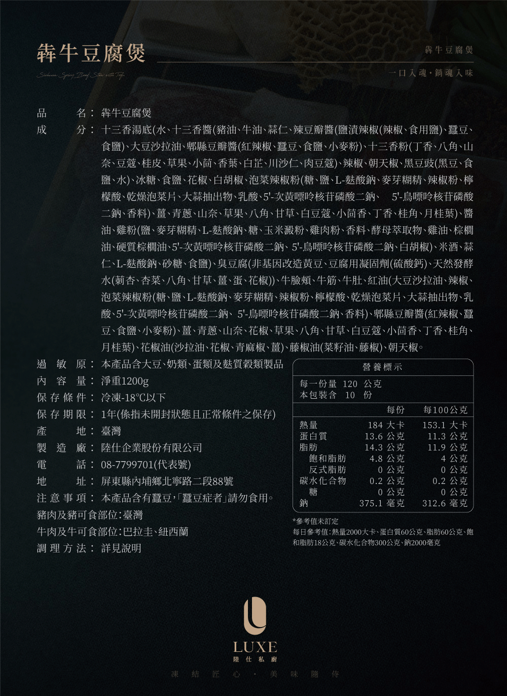 滿堂駿福五饗宴 (犇牛豆腐煲+花膠土雞湯+漁香扣元蹄+瑤柱海皇羹+成都獅子頭) 附品牌保冷袋乙入